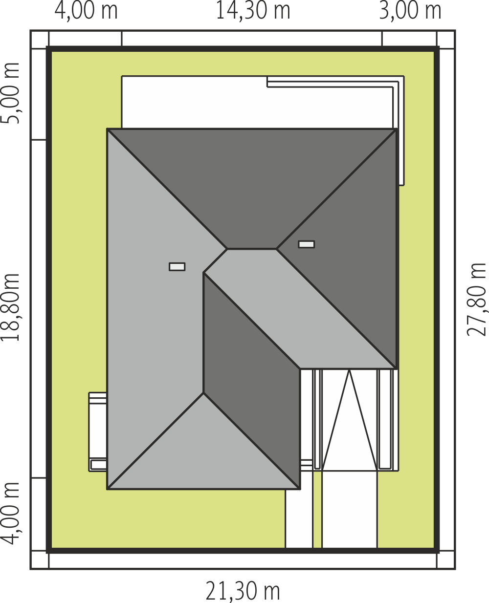 - Minimalūs sklypo matmenys 21.30 x 27.80 m
