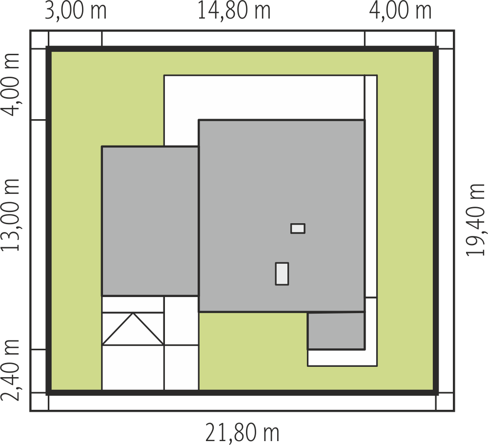 - Minimalūs sklypo matmenys 21.80 x 19.40 m