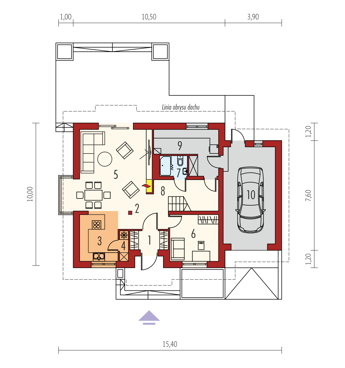- Statinio matmenys 15.40 × 10.00 m